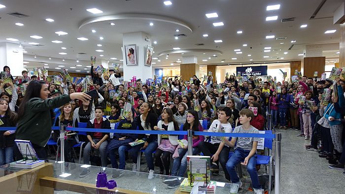 Youtuber e autora de dois livros lançados pelo Grupo Editorial Novo Conceito, Um Novo Mundo e Isolados – O Enigma, Bibi Tatto reuniu centenas de fãs na Livrarias Curitiba do Shopping Paladium.